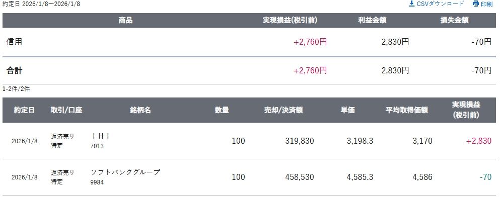 2026/1/8 デイトレード結果