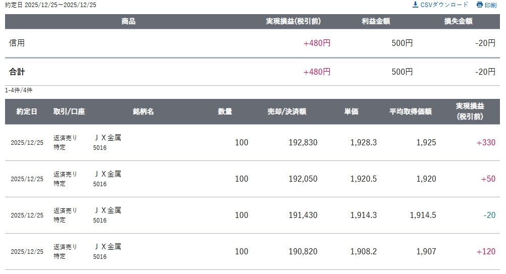 2025/12/25 デイトレード結果