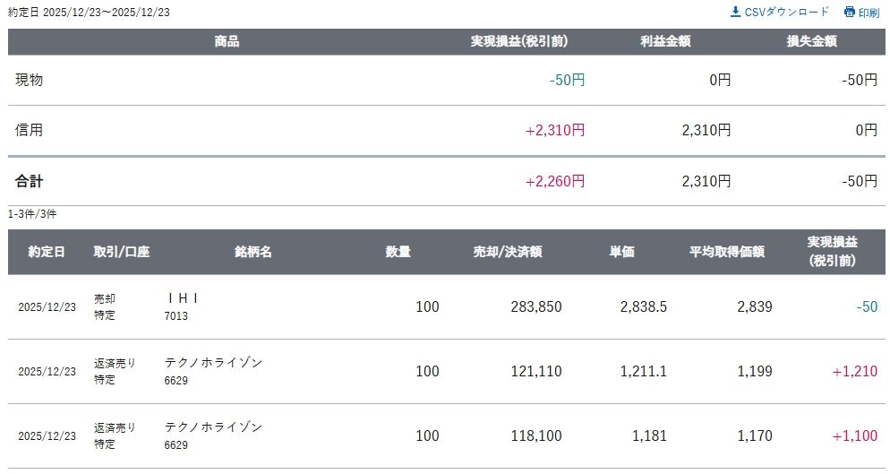 2025/12/23 デイトレード結果